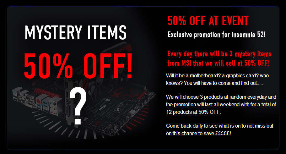 If you're heading to the Multiplay Insomnia i52 LAN party next week, then make sure you say hi if you spot us wandering around. On top of that though, you're probably going to want to stop by the YoYotech booth too, as it's teaming up with MSI to offer some show floor discounts and there's plenty of prizes to win too.