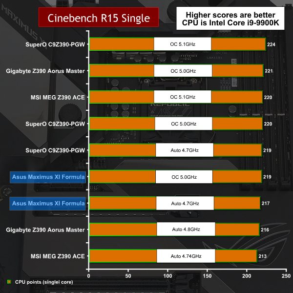 Blender is an intense test for the CPU and we see the Asus ROG Maximus XI Formula perform well.