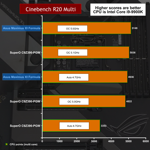 In Cinebench R20 our overclocked i9-9900K is running at a higher speed in this AVX workload and as a result it tops the chart.