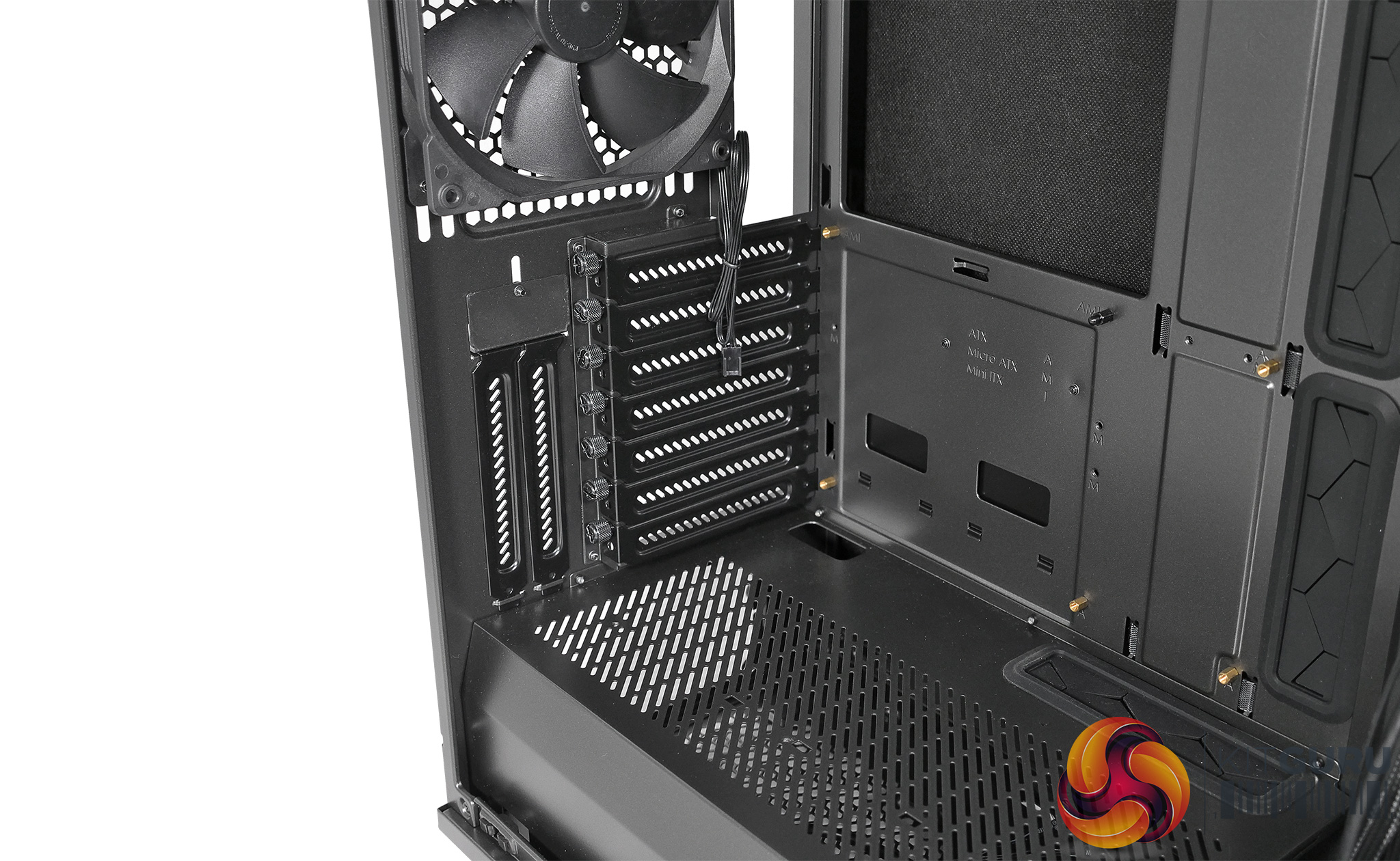 Fan mounts: 3x 120mm/2x 140mm front, 3x 120mm/2x 140mm standard roof layout, 3x 120mm/140mm roof in Open layout, 1x 120mm/140mm rear, 2x 120mm/140mm floor.