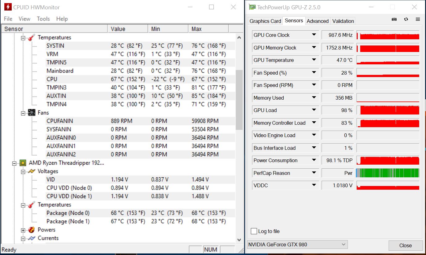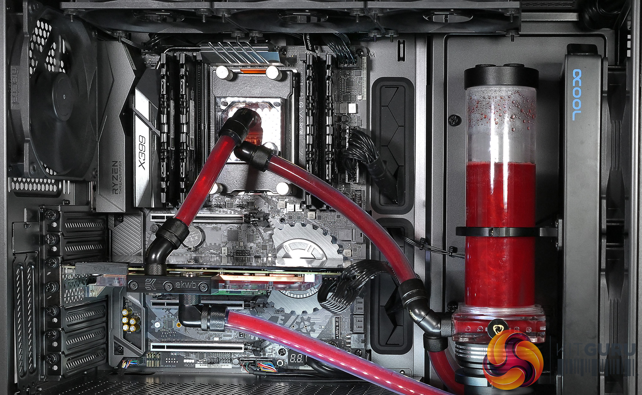 Both system worked very well. The Define R6 has very good air flow (with the top ModuVent panel open) and we were entirely happy with the result. Probably the weakest part of the system was the CPU block on the Threadripper, Air flow was absolutely fine.