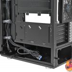 Fractal Design includes a deep channel for cable management that has three ‘hook-and-loop' straps to keep the cables in place. There are two enormous holes for passing cables into the main compartment through grommets that look good and work well. Fractal Design has not seen fit to include another hole and grommet in the power supply cover that would allow you to feed the graphics card power cables upwards. That might be an idea for the next version of this case.