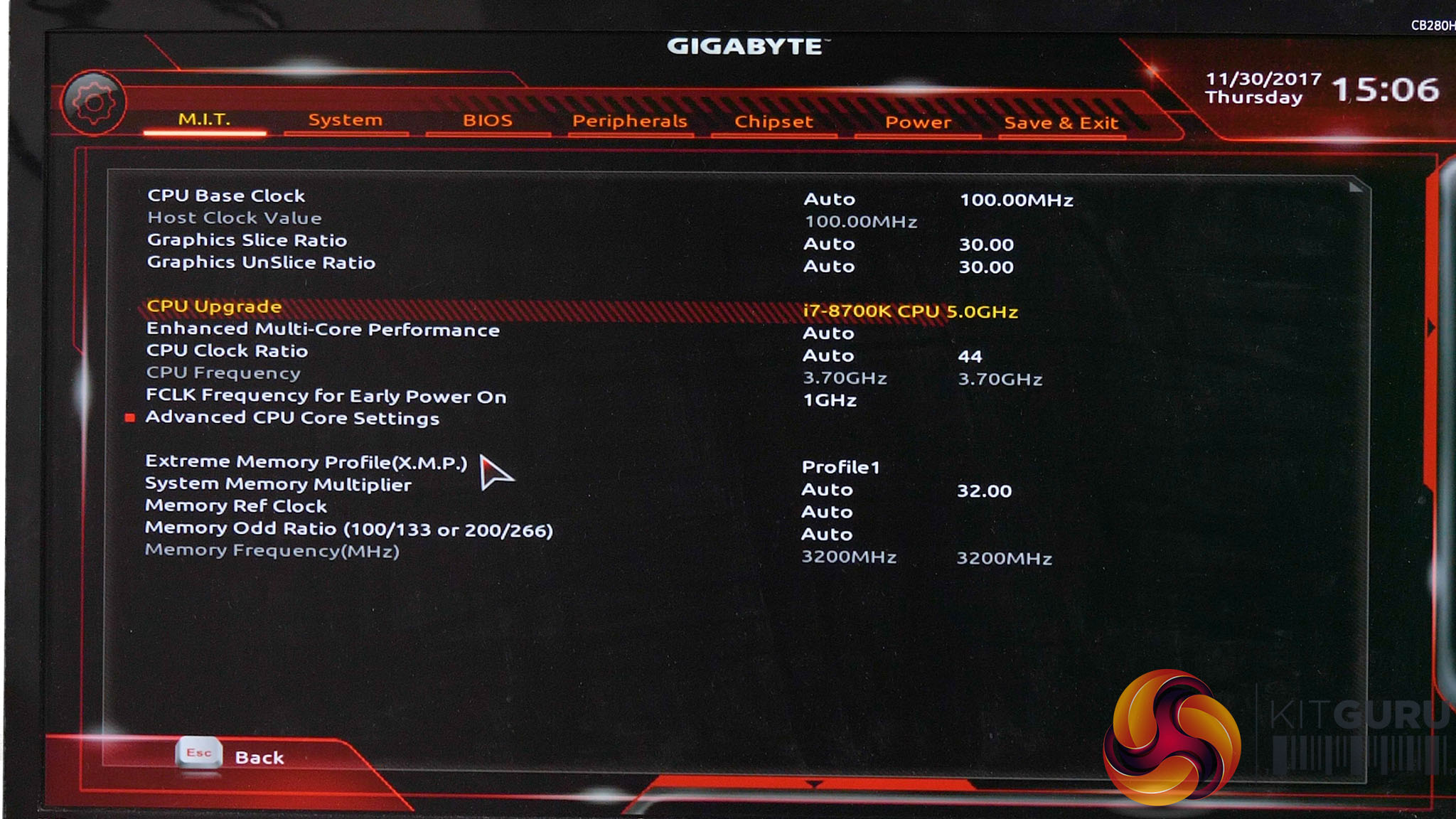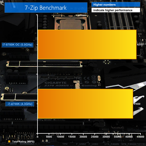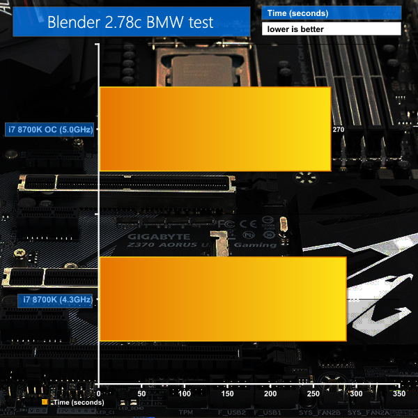 Testing the Z370 Aorus Ultra Gaming at stock clock speeds with an all core Turbo of 4.3GHz went smoothly and the board compared favourably with the Z370 Aorus Gaming 7. It was noteworthy that synthetic test results were slightly higher for the Ultra Gaming while the Gaming 7 pulled ahead in gaming benchmarks, however the two motherboards were not tested at the same time so it would be rash to draw too many conclusions.
