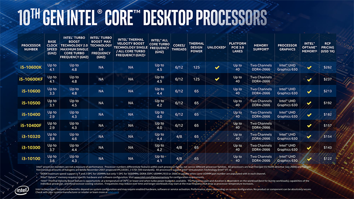 The big news with Intel's product stack for 10th Gen Comet Lake-S is that most parts, including Core i5, come with Hyper Threading. That was a sad oversight with 9th Gen and we are pleased to see it fixed with 10th Gen.