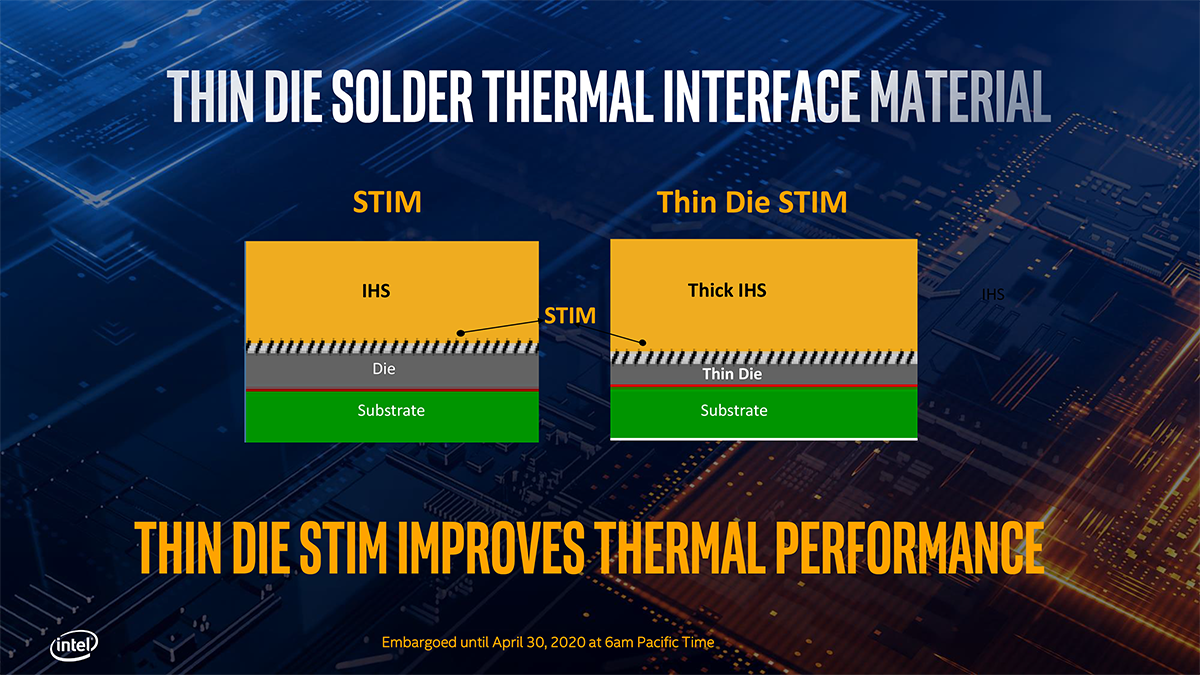 Intel has pulled a clever trick with Core i9-10900K that appears to be nothing more than a 0.3mm thinning of the silicon. The copper heat spreader has been increased in thickness by the same amount and as a result we can use exactly the same coolers on Comet Lake-S as on previous generations of desktop hardware. If this really is the secret to the cool running of Core i9-10900K then we are deeply impressed and have to question why Intel didn't do something similar with 9th Gen.