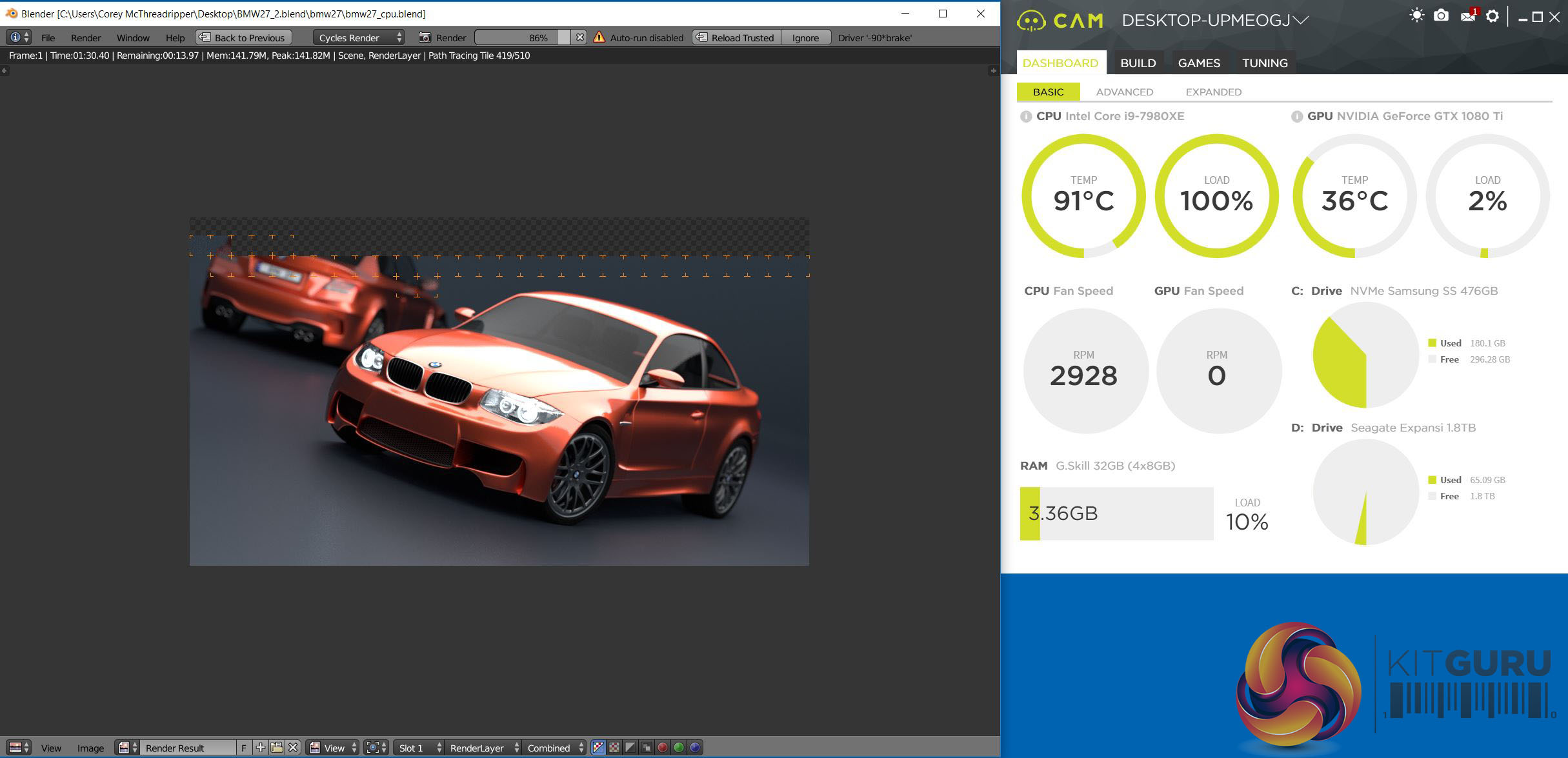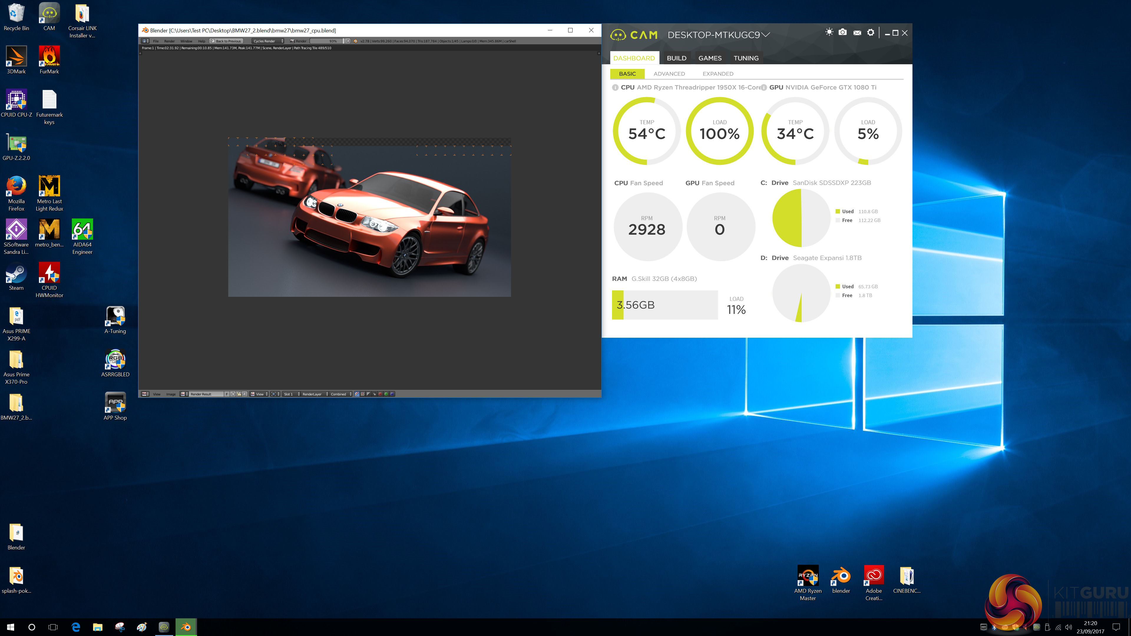 AMD Ryzen Threadripper 1950X running Blender at Stock Clock speeds.