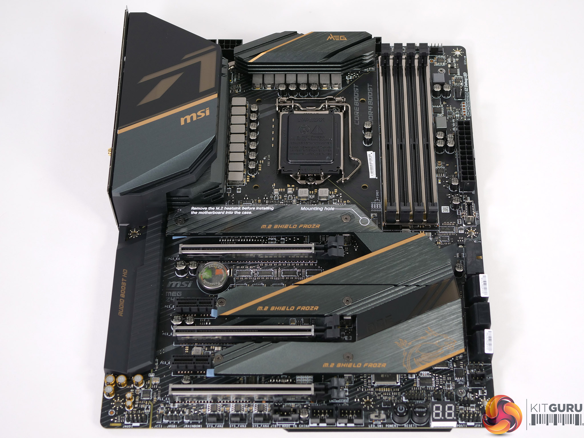 The MSI MEG Z490 Ace looks stylish and understated but it is only when you strip the board down that you realise just how much hardware has been added. Naturally you get coolers on the VRMs, although we are sad to report they are big chunky aluminium things, rather than finned units. In addition there are individual heatsinks on the three M.2 slots, a substantial I/O shroud and a curious partial backplate that MSI calls a Chest Plate.