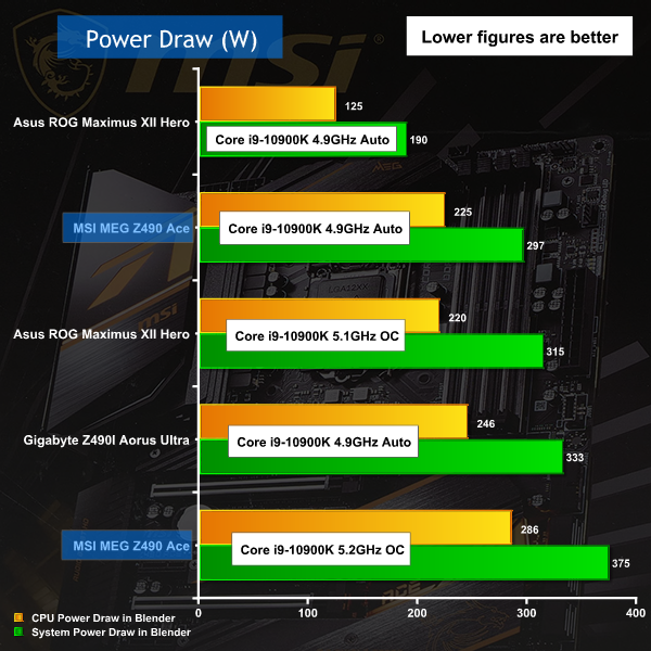Look at the low end of the chart and you can see the Asus running on Auto while adhering to Intel's guidelines. This has a huge impact on power draw as you can see when you check the MSI on Auto which definitely breaks those guidelines. The overclocked figures for Asus and MSI yield few surprises however the ITX Gigabyte on Auto looks very power-hungry. We shall carry out a full review of the Gigabyte in the near future.