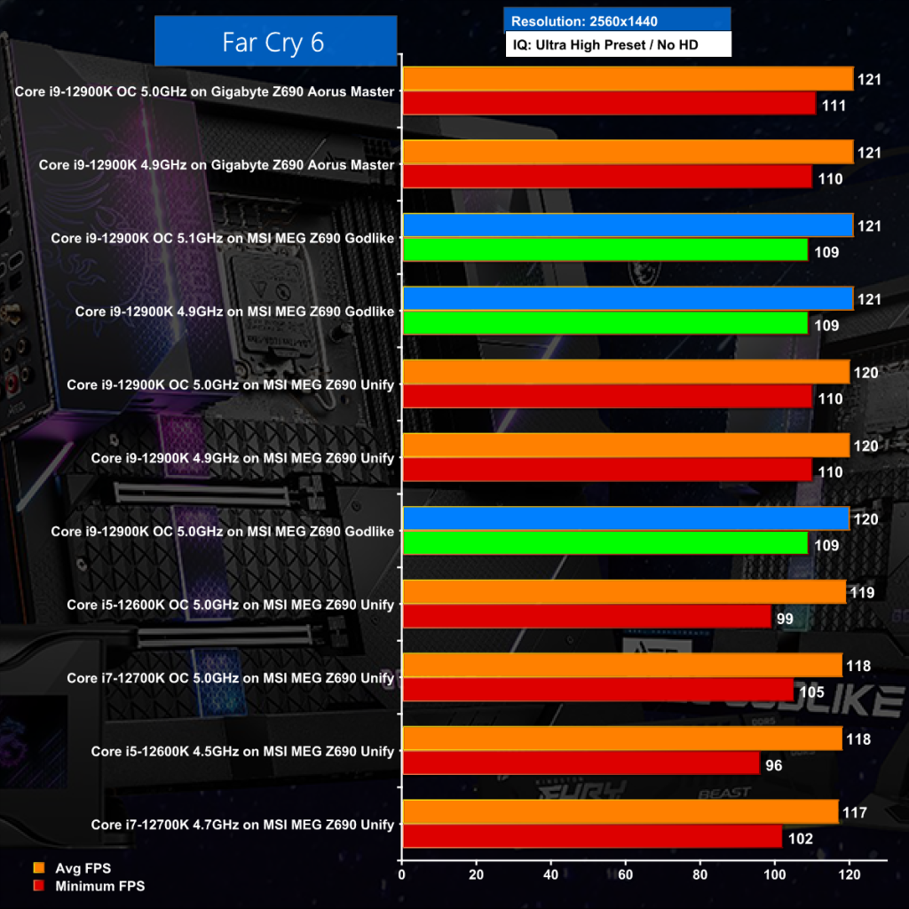 Graphics performance is more important than the CPU in Far Cry 6 at 1440p and we see very little difference between the different test systems however the Godlike does not quite make it to the top of the charts.