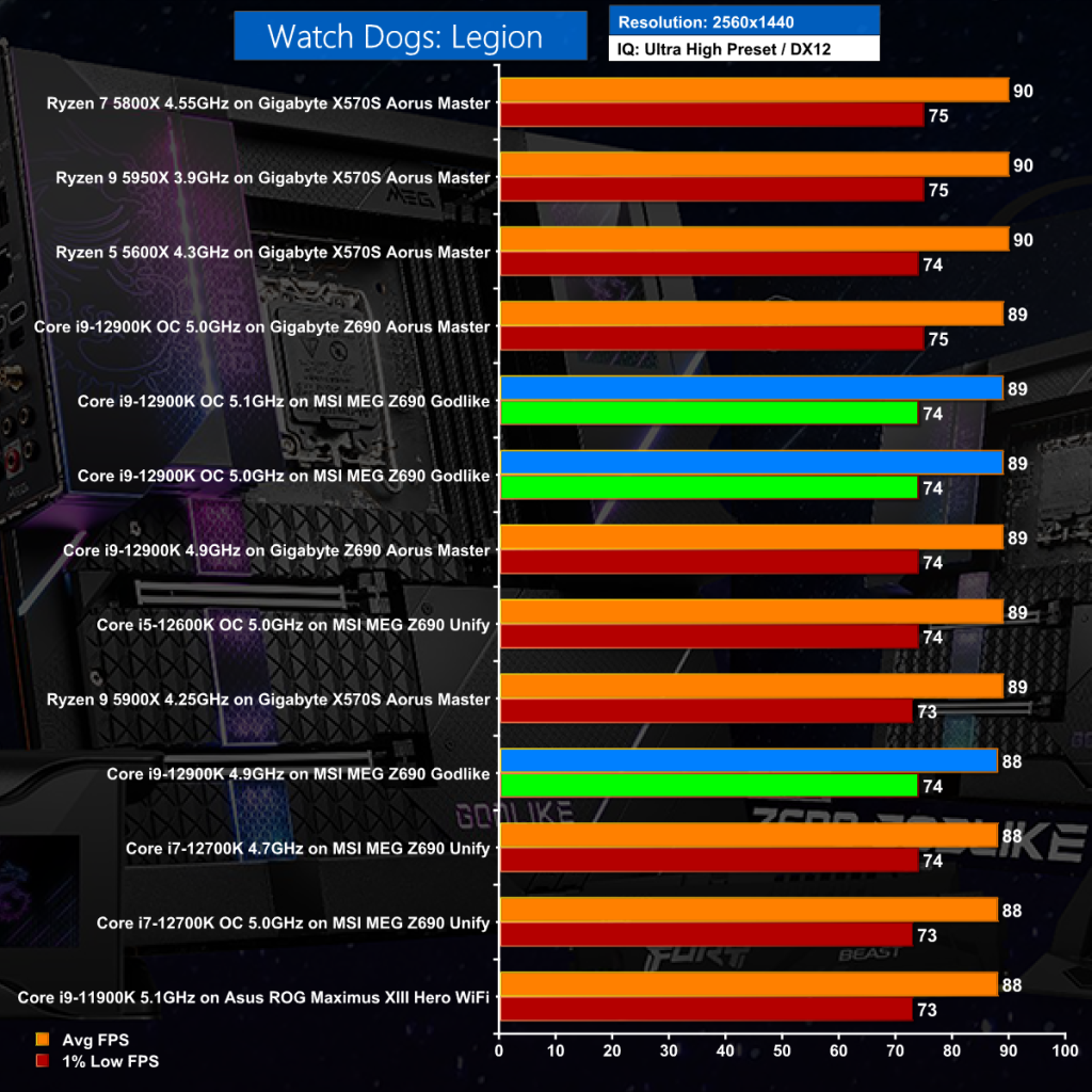 The margins of separation are slight in Watch Dogs: Legion at 1440p however the fact is that the hugely expensive Godlike is not at the top of the chart.