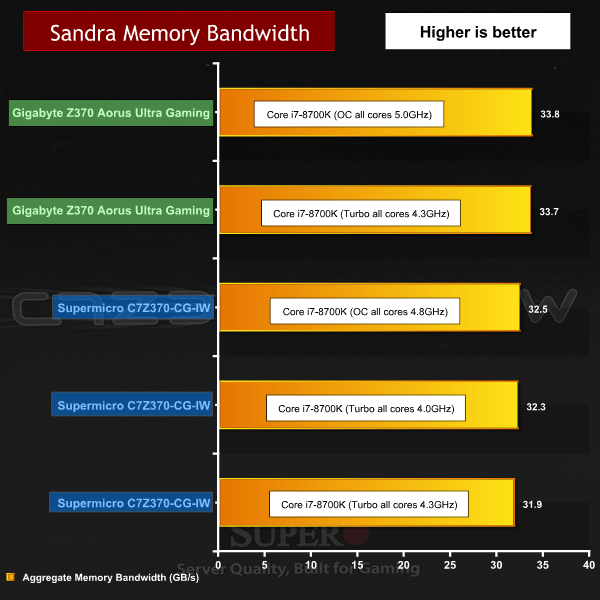 For comparison we referred to our review of the Gigabyte Z370 Aorus Ultra Gaming with the same CPU running at 4.3GHz and 5.0GHz.
