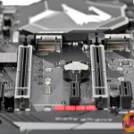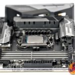 The layout is very clean with a rugged design that is reminiscent of a high end X299 model. The top PCI Express expansion slot gets 16 lanes of PCIe from the CPU which is divided 8+8 if you install a second GPU. After that the third x16 slot gets 4 lanes from the chipset and the x1 slots are also powered from the chipset.