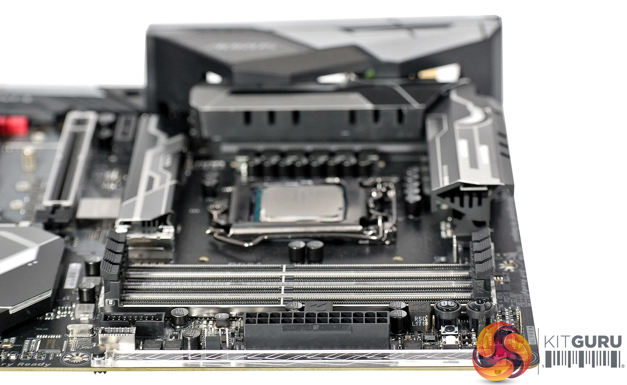 Power connections are located in the classic positions with the main 24-pin at the side and the 8-pin EPS up top and close to the VRM heat sinks.