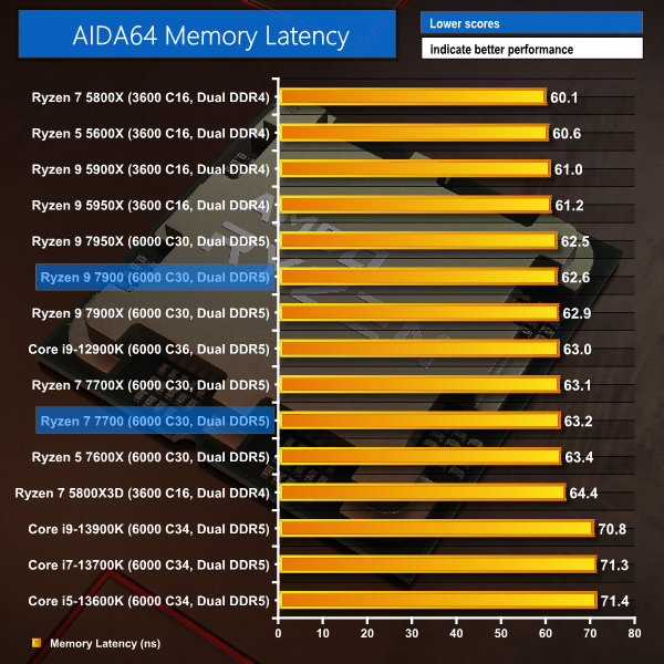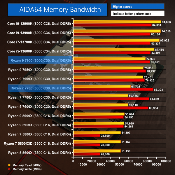 Memory latency on the new CPUs is as expected. We see small increases in the AIDA bandwidth performance, but this is tied to BIOS and AGESA updates, as opposed to anything CPU-specific for the non-X chips.