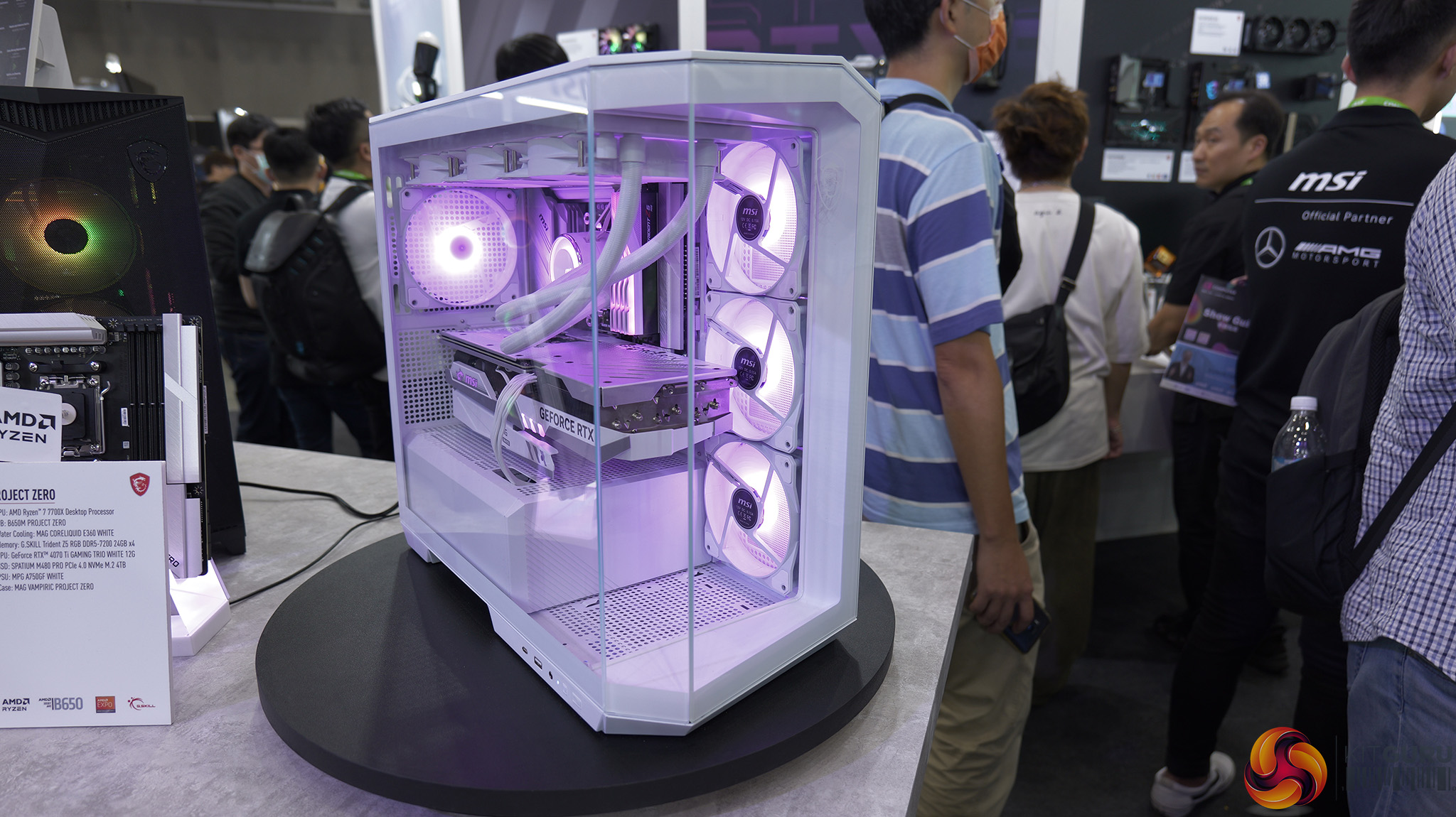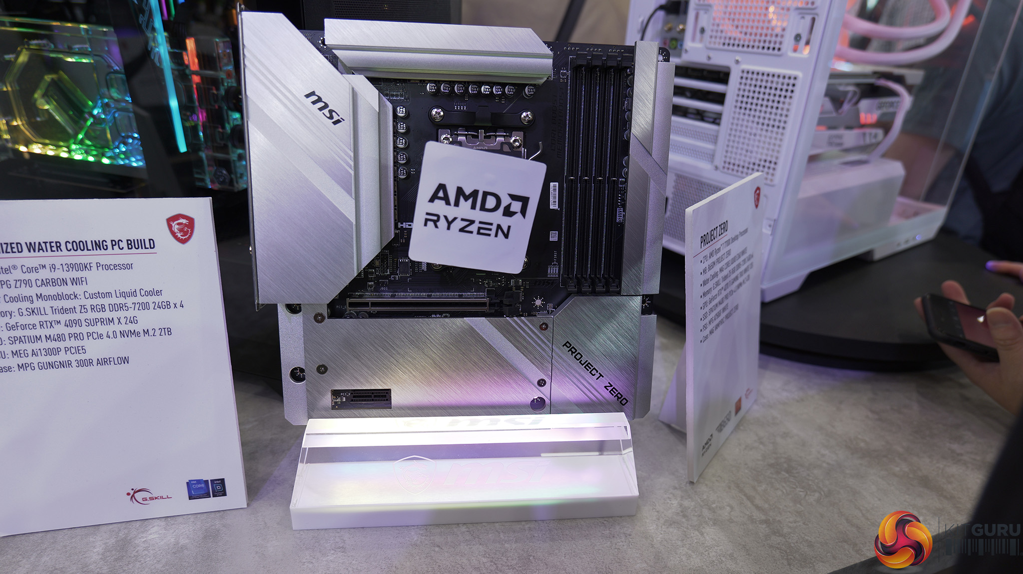 On the motherboard front, MSI had a few interesting boards on show – the new Intel Z790 MAX and Z790 Edge Max WiFi motherboards (coming Q3), and the new Project Zero back-connect B650M motherboard. The first is a new flagship motherboard sporting a brand new Wi-Fi 7 solution, while the Edge version is a slightly cheaper model with the same WiFi 7 upgrade. Meanwhile, the Project Zero board is a new type of motherboard that moves all fan connectors and power cables to the back of the board, allowing for zero cables at the front of the case, resulting in a much cleaner build. This idea has been explored before by several motherboard makers, with MSI now being the latest.