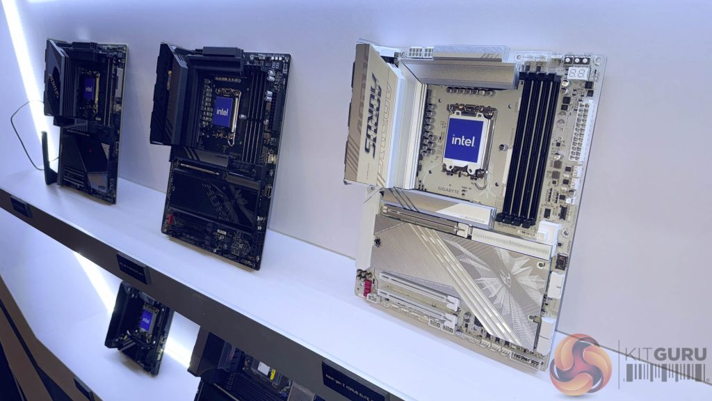 Alongside the 9000-supporting AMD products, Gigabyte also had their ‘Next gen Intel’ products on display – but with precious little information on the exact specifications. No doubt these boards will eventually be launched with lots of Ai TOP branding at the high end – even if it’s unclear what that might actually entail (outside of better cooling, the capacity to handle plenty of power and room for at least 4x Ai TOP graphic cards).