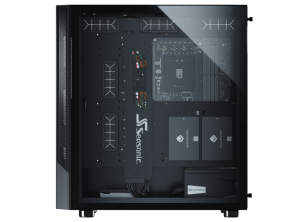 The Seasonic ARCH Q503 with the integrated CONNECT power supply is a mid-tower ATX chassis that features a sturdy steel body and tempered glass panels on both sides. The greatly simplifies system building and cable routing thanks to the mounted power module, allowing components to be connected directly to the cable management hub with shorter cable runs, thus reducing clutter.