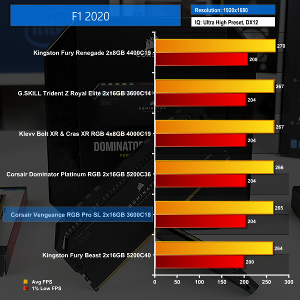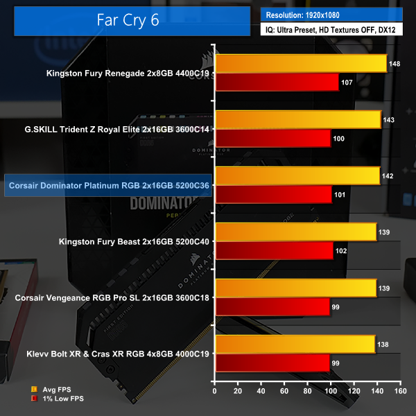 As we saw in our DDR4 vs DDR5 testing piece, a high-speed and reasonable latency DDR4 kit can often outperform the market's current high-end DDR5 options. That's what we continue to see here, though Corsair's 5200MHz CL36 Dominator Platinum RGB kit does narrowly outperform the cheaper CL40 competitor from Kingston in general.