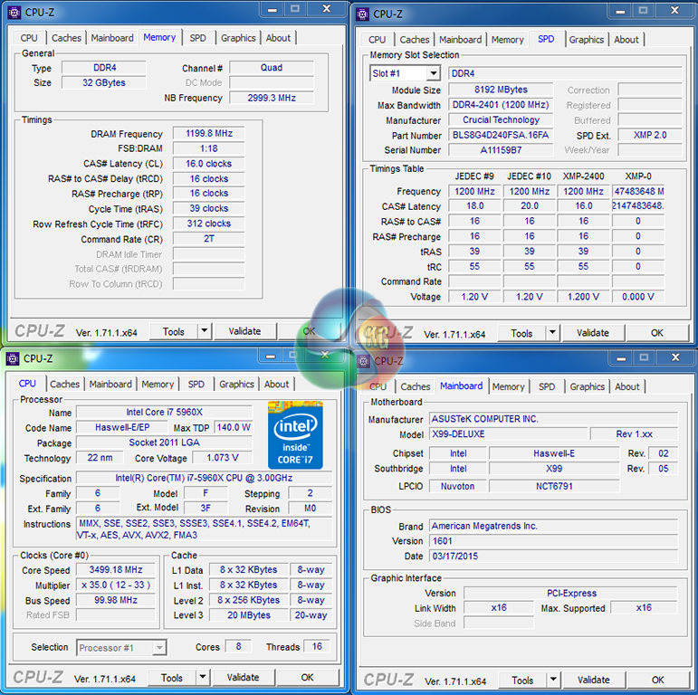 - Motherboard: Asus X99 Deluxe (BIOS 1601).