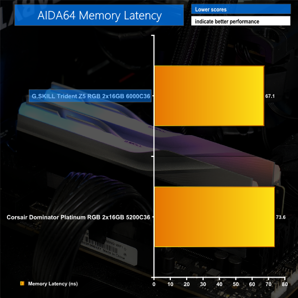 Latency is also a strong victory for the Samsung-based G.SKILL set thanks to its higher operating speed whilst maintaining a timings advantage. This is one of the clear indicators of a premium memory kit – the speed is bumped-up but the timings do not suffer in return.