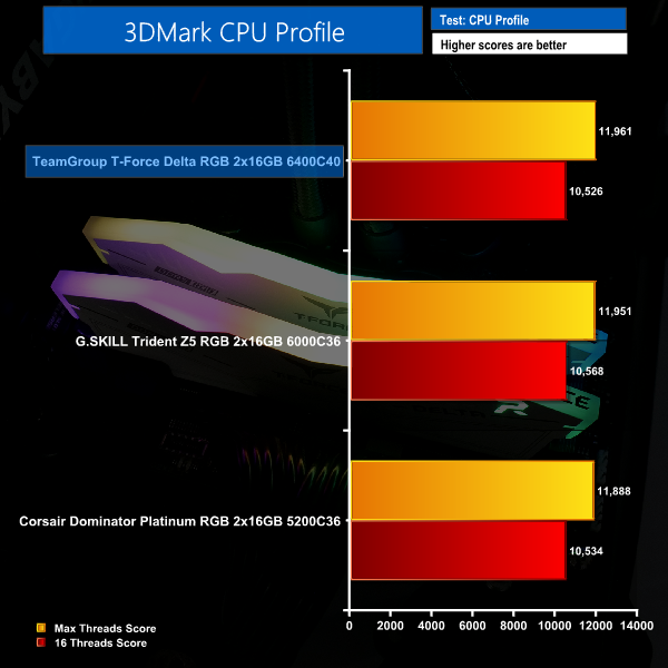 It’s all very close in the 3DMark CPU Profile test, so we wouldn’t choose any particular kit of memory based on these results.