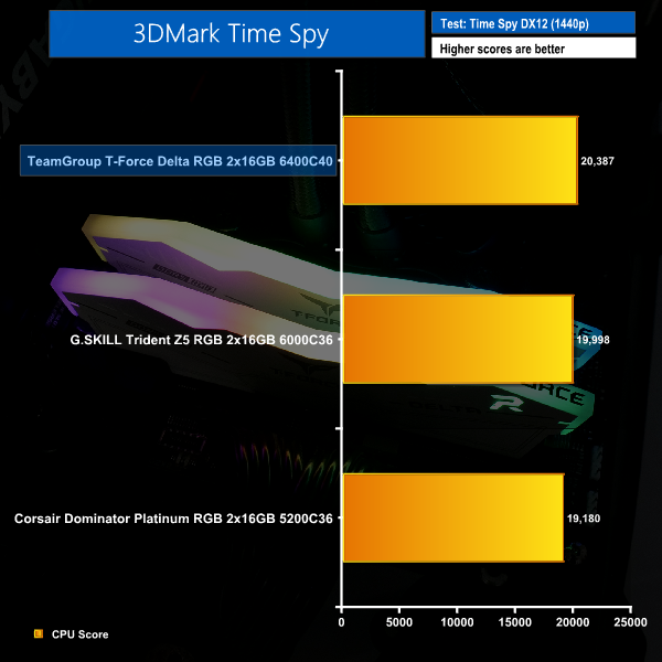 Time Spy, however, is more favourable to the highly clocked TeamGroup set and rewards this 6.4GHz kit with a top-place finish in our chart.