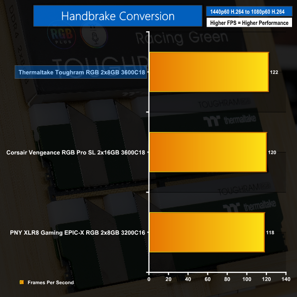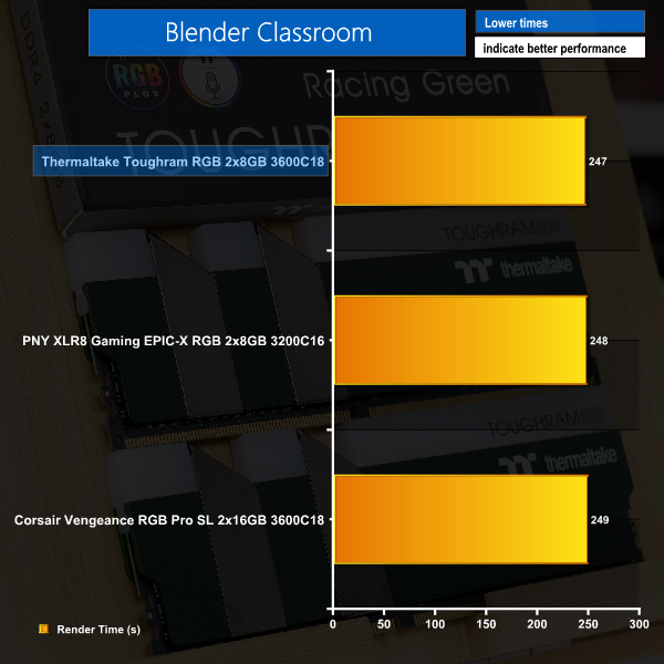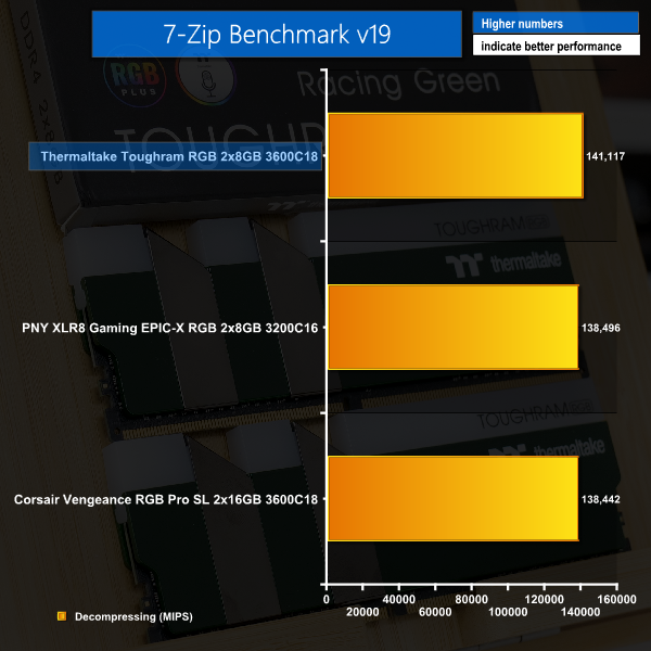 In general, the 3600MHz 18-19-19-39 kit from Thermaltake is marginally quicker than Corsair’s 18-22-22-42 set, while the 3200MHz 16-18-18-38 is comfortably beaten in the notable scenarios.