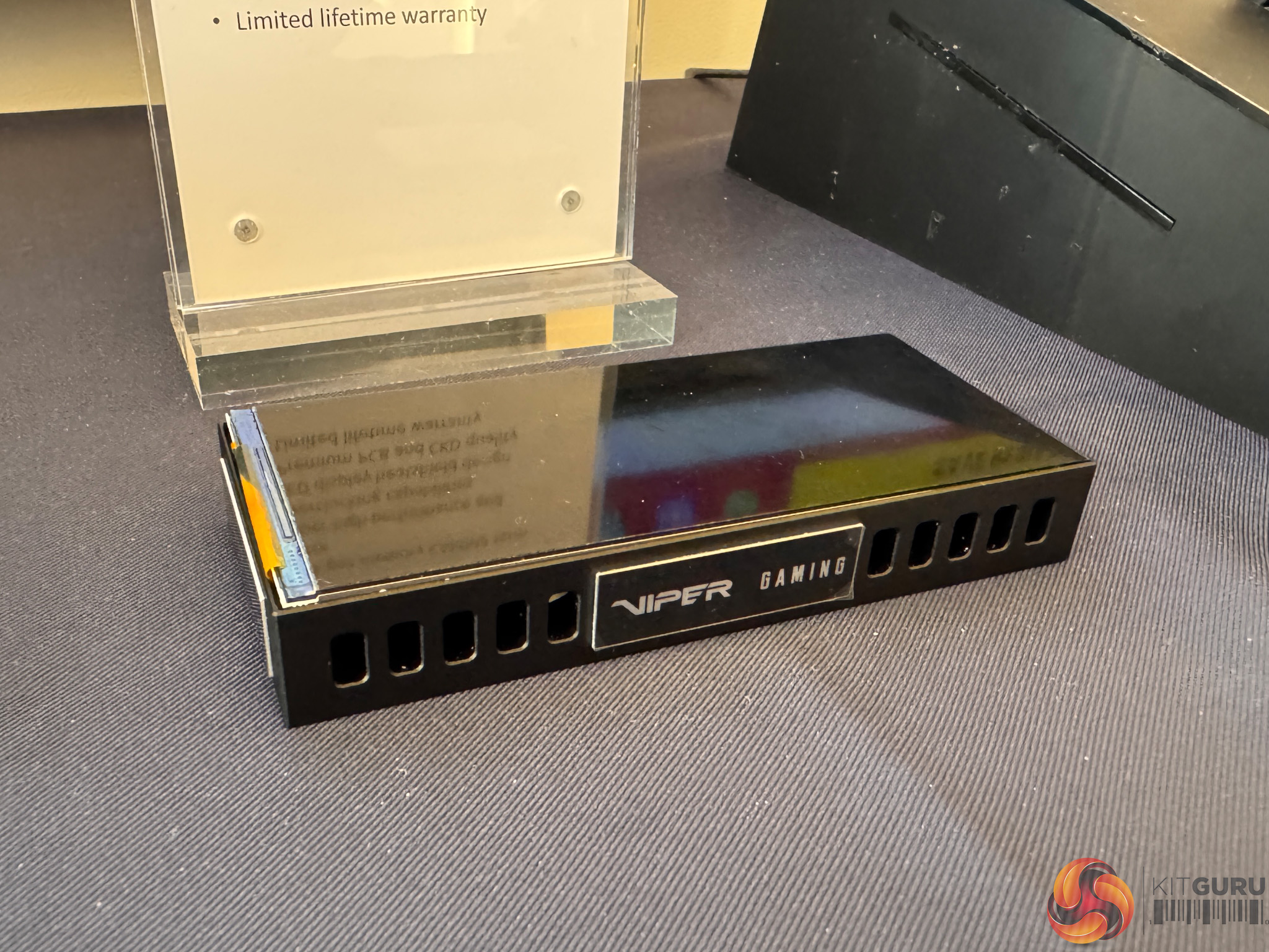 Last year, we started to see prototypes popping up for LPCAMM2 memory, a new standard designed to work with both laptops and desktops. Patriot has one of its LPCAMM2 engineering samples here on show, but we're still some ways off from seeing these hit the market. For cooling, Patriot also has a Viper Steel heatshield prototype. If this new memory format hits the market, you would likely slot your memory in horizontally, next to your CPU. That way, you can cover it up with a heatshield solution, similar to M.2 SSDs.