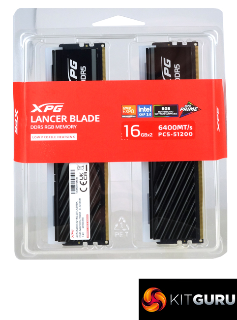 ADATA, formed in 2001, is one of the largest manufacturers of flash memory and DRAM in the world, and XPG is the company's gaming arm. The ADATA XPG Lancer Blade RGB DDR5-6400 is an RGB-enabled DDR5 kit, it supports both Intel XMP 3.0 and AMD Expo technologies, and has been designed as a low-profile module at 40mm high, aimed at compact PCs or to give more clearance when dealing with tower CPU coolers.