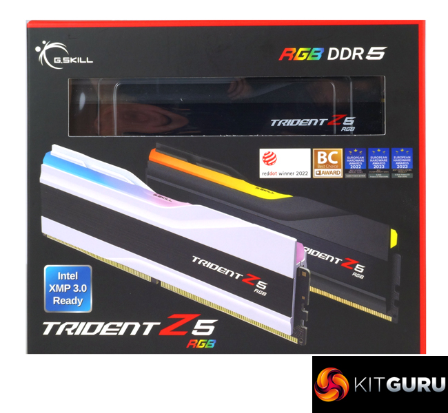 G.Skill's Trident Z5 RGB DDR5 memory line is an extensive one with a wide range of speeds and four kit capabilities so there should be a kit for most people. The line-up which supports Intel XMP 3.0 starts at 5200MHz (40-40-40-83 1.10V) with eleven-speed options up to the current flagship 8400MHz (40-52-52-1341.40V). There are four capacity options, (all using two modules per kit) 96GB, 64GB, 48GB and 32GB with varying speed options per capacity.