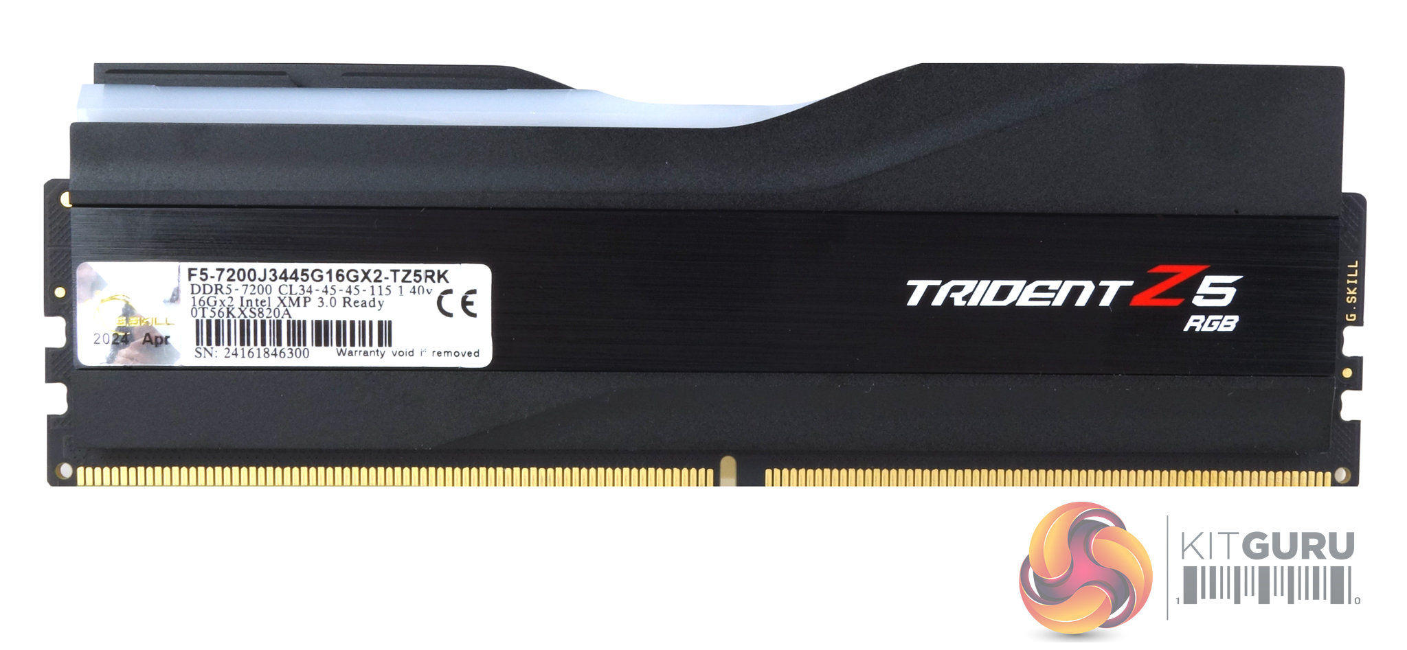 The top of the module is home to the RGB defuser bar which covers eight RGB zones which are controlled by either G.Skill's own controller software or by the motherboard RGB system.