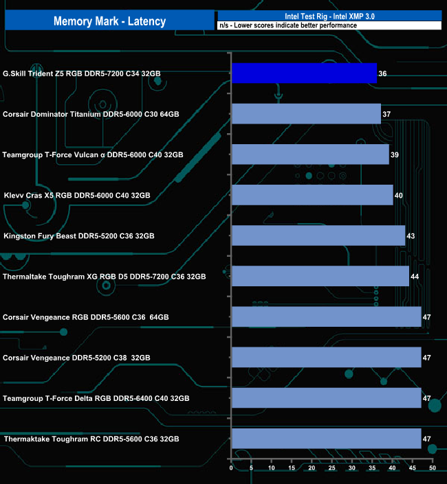 In the latency results the Trident Z5 RGB sits in top sport but only just from the Dominator Titanium 6000 from Corsair.
