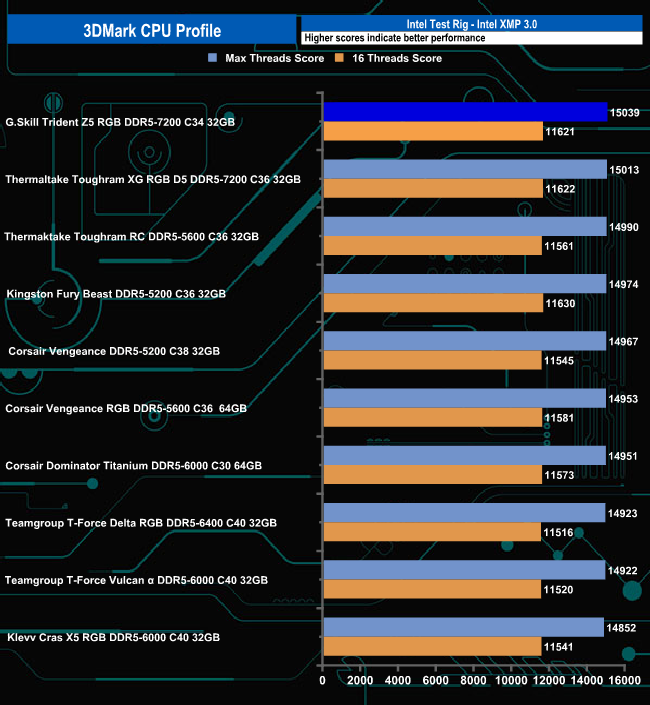 Albeit by small margins, the CPU-focused scoring in 3DMark puts G.Skill's Trident Z5 RGB DDR5 to the top of our charts.
