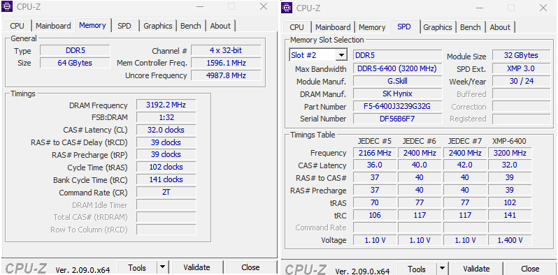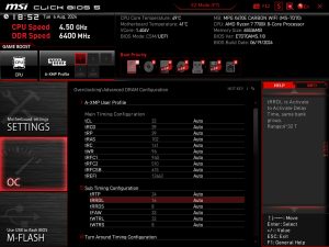 The memory runs at DDR5-4800 with timings of 40-40-40-77 natively with the single XMP 3.0 profile supporting DDR5-6400 with 32-39-39-102 timings at 1.4V.