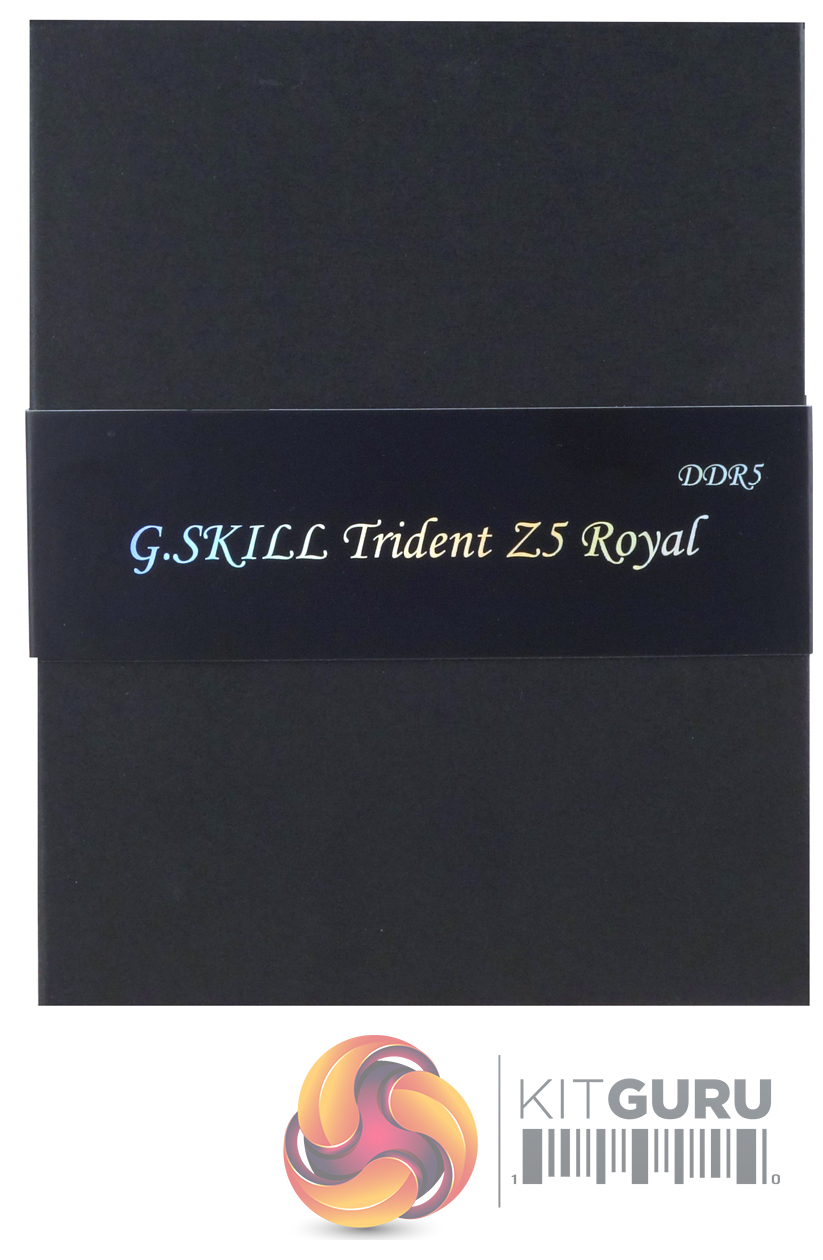 The G.SKILL Trident Z5 Royal memory comes in a smart hard box with the product name printed on a narrow cardboard sleeve that slips over the box.