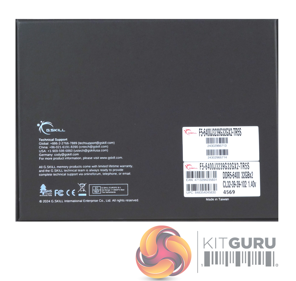 The front of the box just has the G.Skill logo on the front. The rear of the box has G.SKILL contact and warranty information, as well as the product sticker holding the module's information.