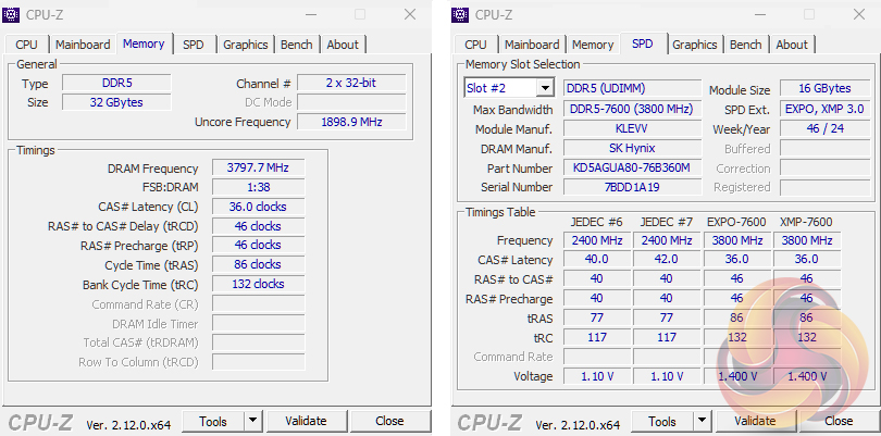 The memory runs at DDR5-4800 with timings of 40-40-40-77-117 natively with the XMP 3.0 and EXPO profiles supporting DDR5-7600 with 36-46-46-86-132 timings at 1.4V.