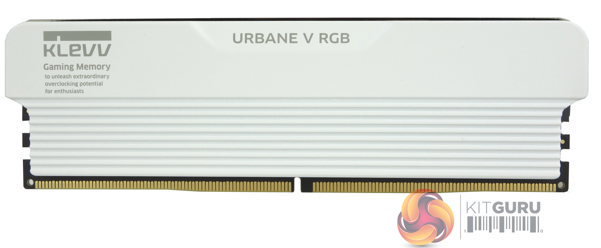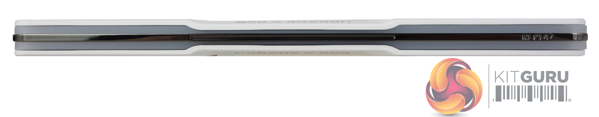 The top of the module is home to the defuser bar, which covers the RGB zones. A chrome strip carries a very small Klevv name tag and splits the bar into two lengthwise. The RGB is controlled by the motherboard RGB system software, as Klevv presently doesn't have dedicated RGB memory software.