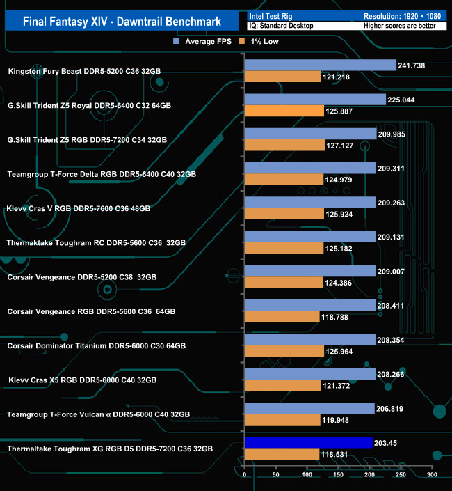 In the Total War Pharaoh Battle benchmark, the ToughRAM XG RGB D5 memory kit sits in the top five in the results chart using Ultra settings but oddly sits near the bottom of the Low settings chart. However, truth be told there's hardly anything in it between any of the modules in this test.