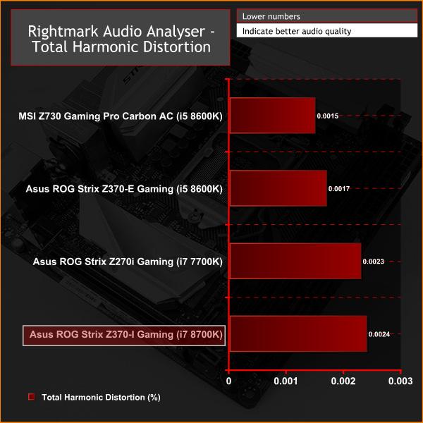 That’s solid, although it is a couple of minor steps behind last year’s Asus board and this year’s full-size MSI Z370 board. It’s not going to make a difference to most people, but audiophiles may want to bear this in mind.