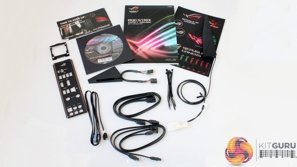 The small Asus ROG Strix Z370-I Gaming board arrives in a typically smart package. It’s all black cardboard on the inside, with the board in its own smart box and the accessories included in a second box below – a more considered approach than just tossing all of the accessories beneath the motherboard tray.