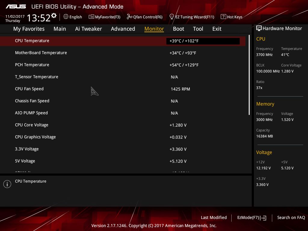 The Monitor menu has more voltages, temperatures and fan speeds than any other area of this UEFI, and the Boot menu has configurable options, fast boot tools, options to change the boot order and the usual override settings.