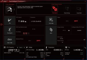 The Asus ROG Strix Z370-I Gaming comes with the usual selection of utilities. The key bit of software is AI Suite 3, which has a main screen full of component, voltage, temperature and fan speed information alongside one-click optimisation options.