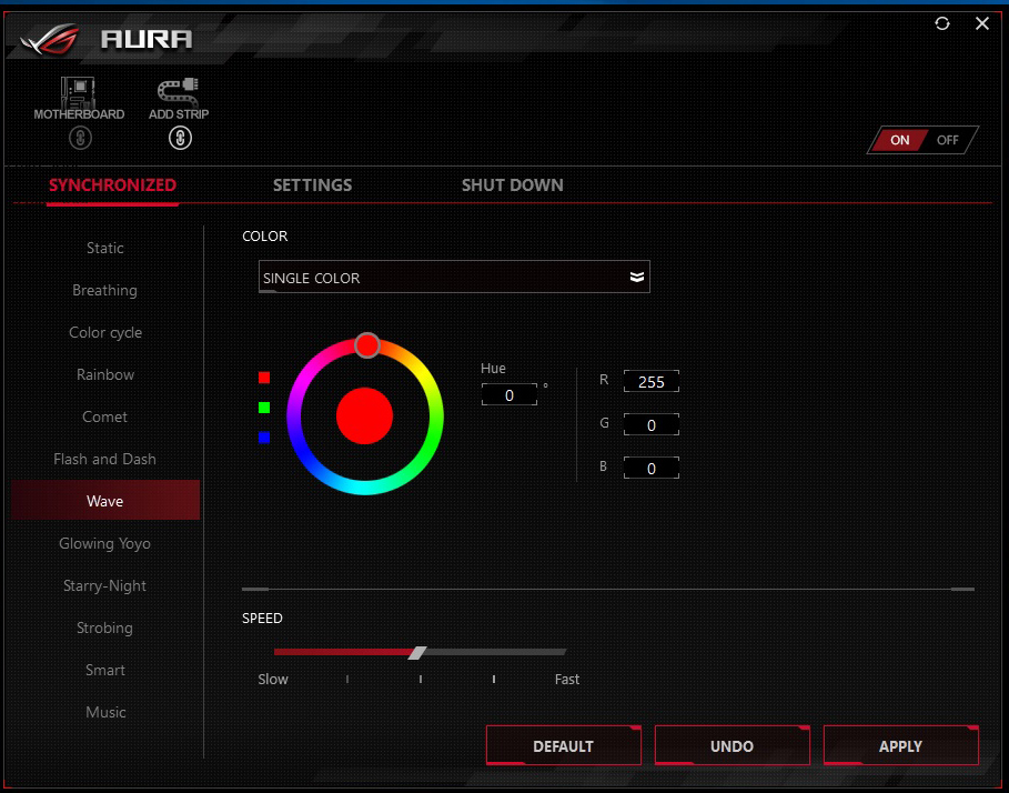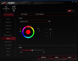 The familiar Aura lighting tool can be used to program the motherboard’s RGB LEDs to run in static colours or patterns, and they can also react to CPU temperature or workload. Compatible light-strips can also be added to this app and managed from within the software.