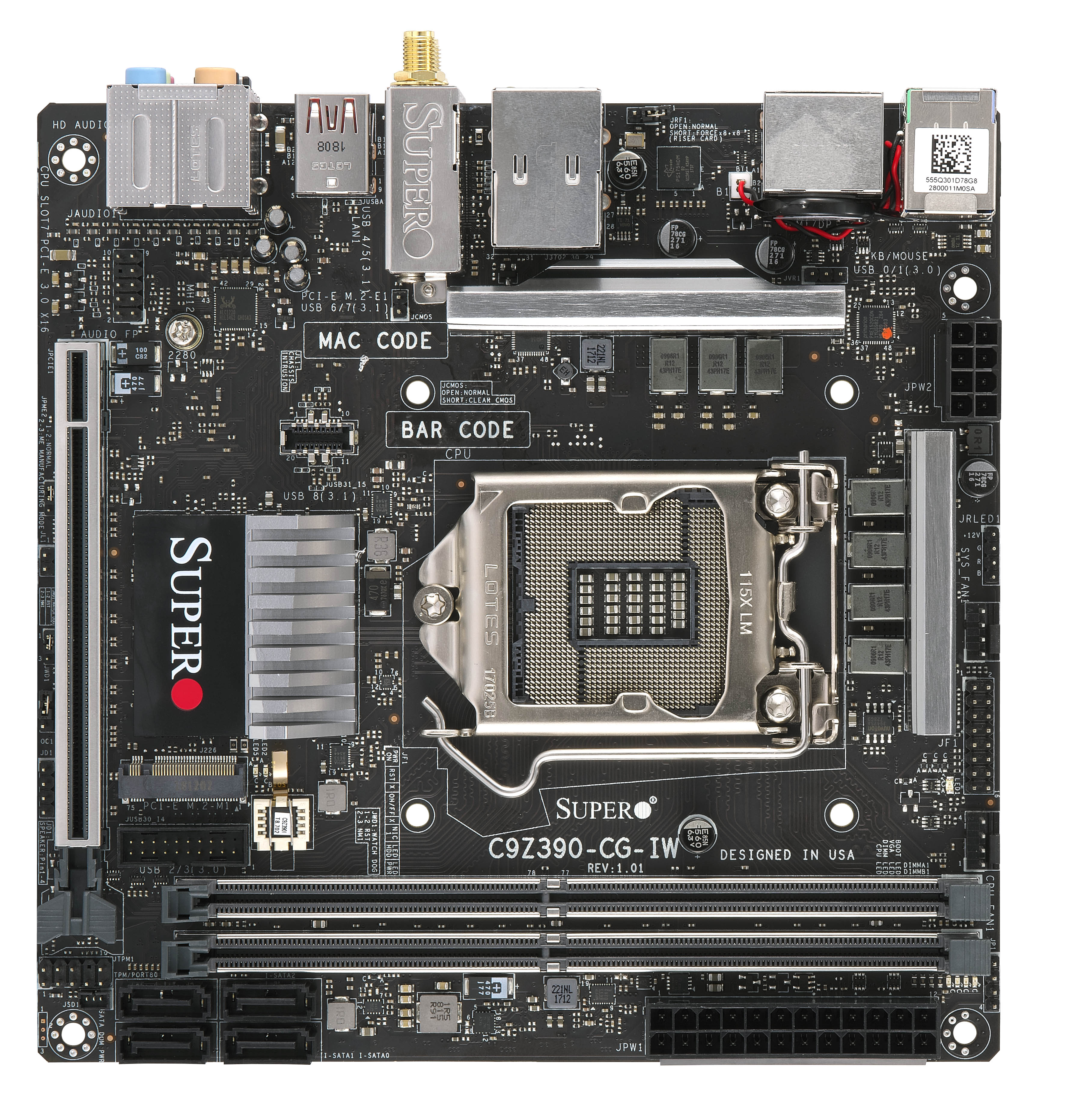Those looking for a more compact solution will be pleased with the SuperO Mini-ITX C9Z390-CG-IW. Given its smaller size, the motherboard is limited to 32GB of memory across two DDR4-3866MHz slots.
