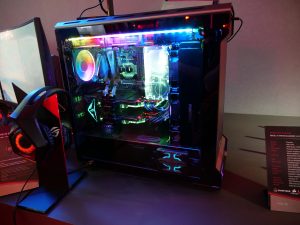 We also got to look at some ‘powered by ASUS' modded systems, the first being the RAH CL (Cleopatra) system. This is a Ryzen rig, based on the 1800X, while it is built into In Win's D-Frame chassis. The watercooling gear is comprised of Bitspower components.