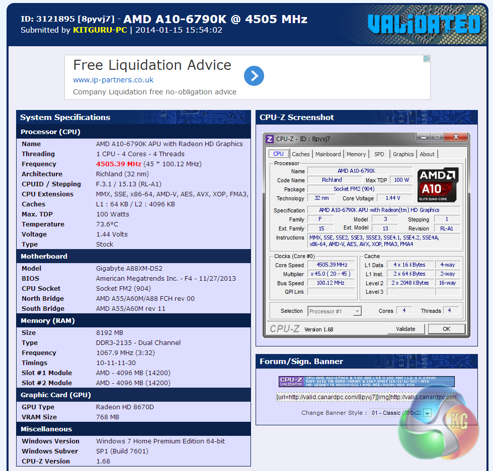 We managed to achieve an impressive 4.5 GHz overclock with the AMD Vision A10-6790K. This was achieved by bumping the multiplier up to 45x and using an offset voltage of +0.072V. We haven't managed to achieve a higher overclock with this particular chip, even on a much more expensive motherboard.