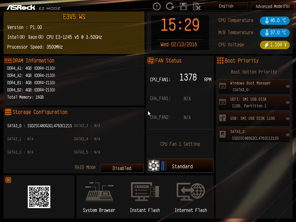 There are two modes, EZ and Advanced, with the EZ Mode giving you a single-page readout of all the most important settings, plus a few options you can change, such as dragging and dropping the drive boot order or setting the CPU fan speed.