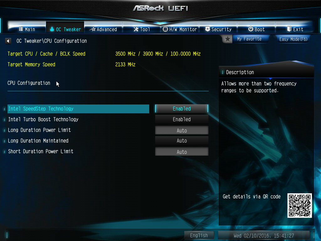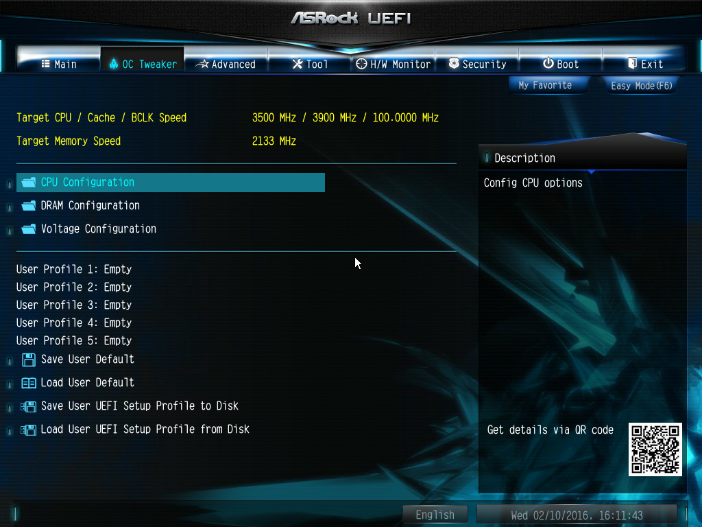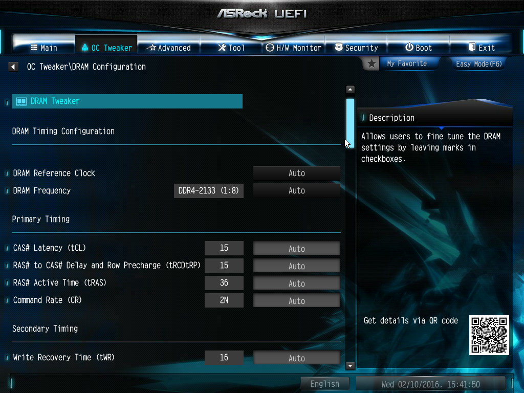 There are loads of DRAM options, but the CPU options were limited to turning processor features off and on with the Xeon we were using. From experience with ASRock's UEFI OC Tweaker in the past, there should be plenty of CPU features to play with here if you have, for example, an Intel Core i7-6700K installed.