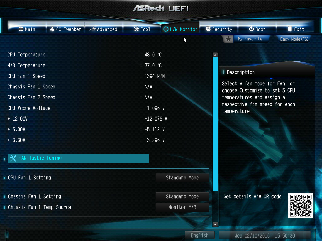 The usual array of hardware health readings can be found in the H/W Monitor section.